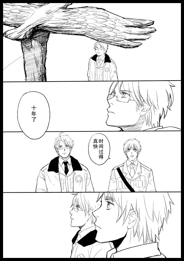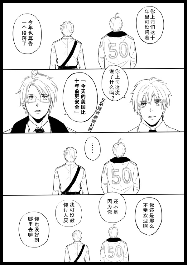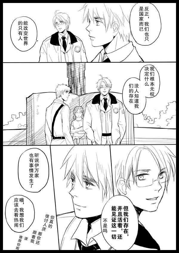 没有画得很认真,嗯……反正只是自娱自乐而已……一般我都喜欢画架空的米英,第一次以国家的身份来画米英,我想以国家的名义来画的话这是我最大限度的擦边了……